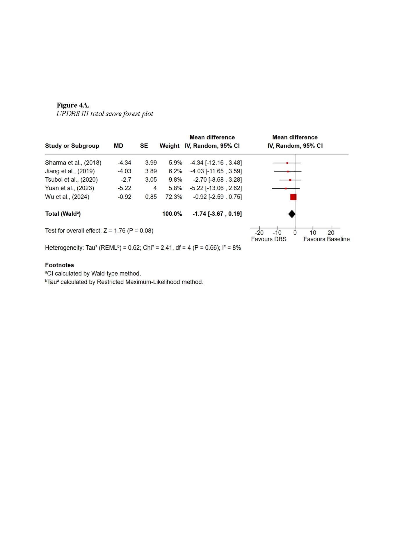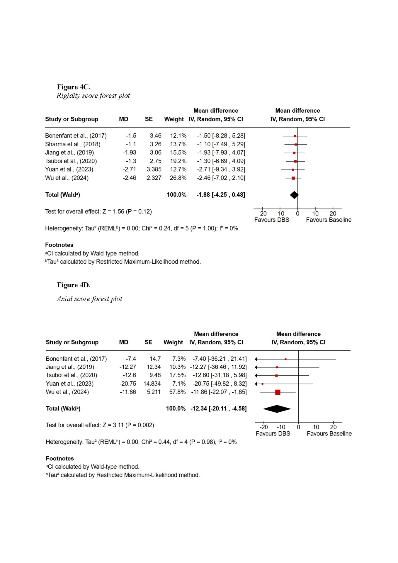 Findings demonstrated that DBS provides substantial global motor improvement, with tremor showing the most robust and consistent response across all subtypes. TD patients achieved the greatest overall benefit, with improvements exceeding 60% in some cohorts. AR and MX patients experienced intermediate benefits, while PIGD patients showed the least favourable outcomes, primarily due to the axial symptoms such as gait and postural instability. Subscore symptom domain meta-analysis also supported the highest improvements in tremor scores, with a pooled mean difference of −3.01 (95% CI −5.44 to −0.59; Z = 2.44, p = 0.01), whereas axial improvements did not reach statistical significance. Non-motor outcomes were more variable: TD patients tended to maintain cognitive stability, whereas PIGD patients were more vulnerable to postoperative cognitive decline. Quality-of-life improvements were evident across subtypes but differed in magnitude, reflecting baseline disparities.