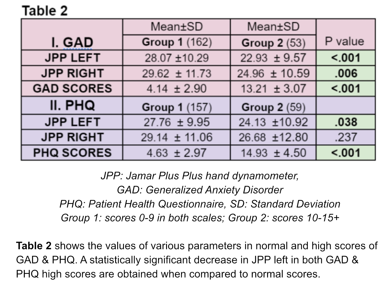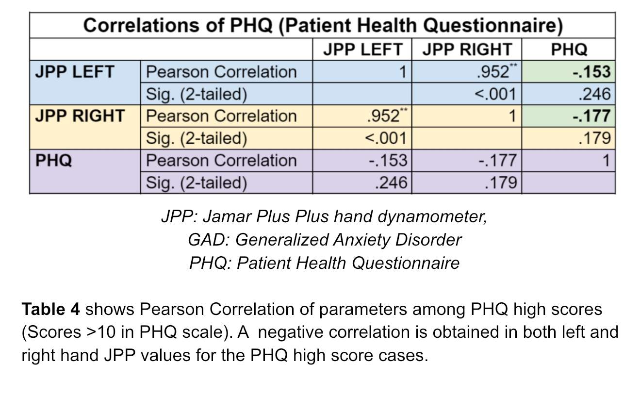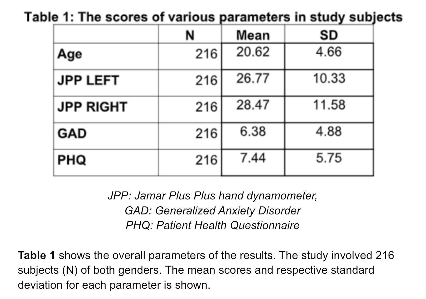 The physiological parameters of age, body mass, height and gender influence the hand grip strength along with one’s occupation, leisure activities, and hand span. Recently studies have reported an association between handgrip and the mental health of the population.