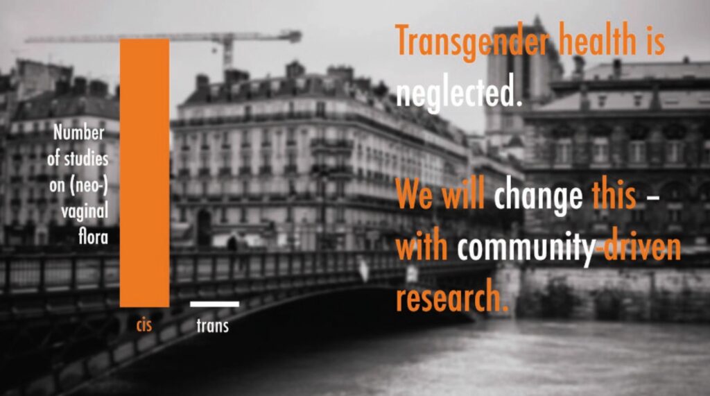 The absence of research in transgender health has real consequences – consequences that some of us have experienced firsthand. One of us (Clara), a trans woman, recently had to deal with vaginal flora dysbiosis; a condition in which the homeostasis of the microbial flora is disrupted. She observed distinct changes in odour and discharge, which seemed to fall within discrete types and could change dramatically over a period of weeks. This observation sparked her curiosity. But when she started to explore the scientific literature, no knowledge seemed to exist on the topic. To address the dysbiosis, she obtained probiotics at the local pharmacy, not knowing whether those would actually work for her own physiology. While these often did seem to help, there was a fundamental lack of information – no one seemed to know what the trans woman’s vaginal flora consists of.