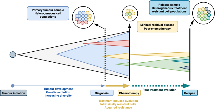 To examine the exact properties of treatment-resistant cancer cells, we must collect them immediately following treatment. However, retrieving and analysing post-treatment ovarian cancer specimens is difficult. Sample retrieval requires invasive procedures and, due to the microscopic nature of residual disease, only a small amount of biological material may be available. This can present challenges for subsequent analysis. If we wait until the disease relapses, more diseased tissue would be available but, as the cancer evolves over time, the properties of the cancer may have changed in the time between primary treatment and relapse.